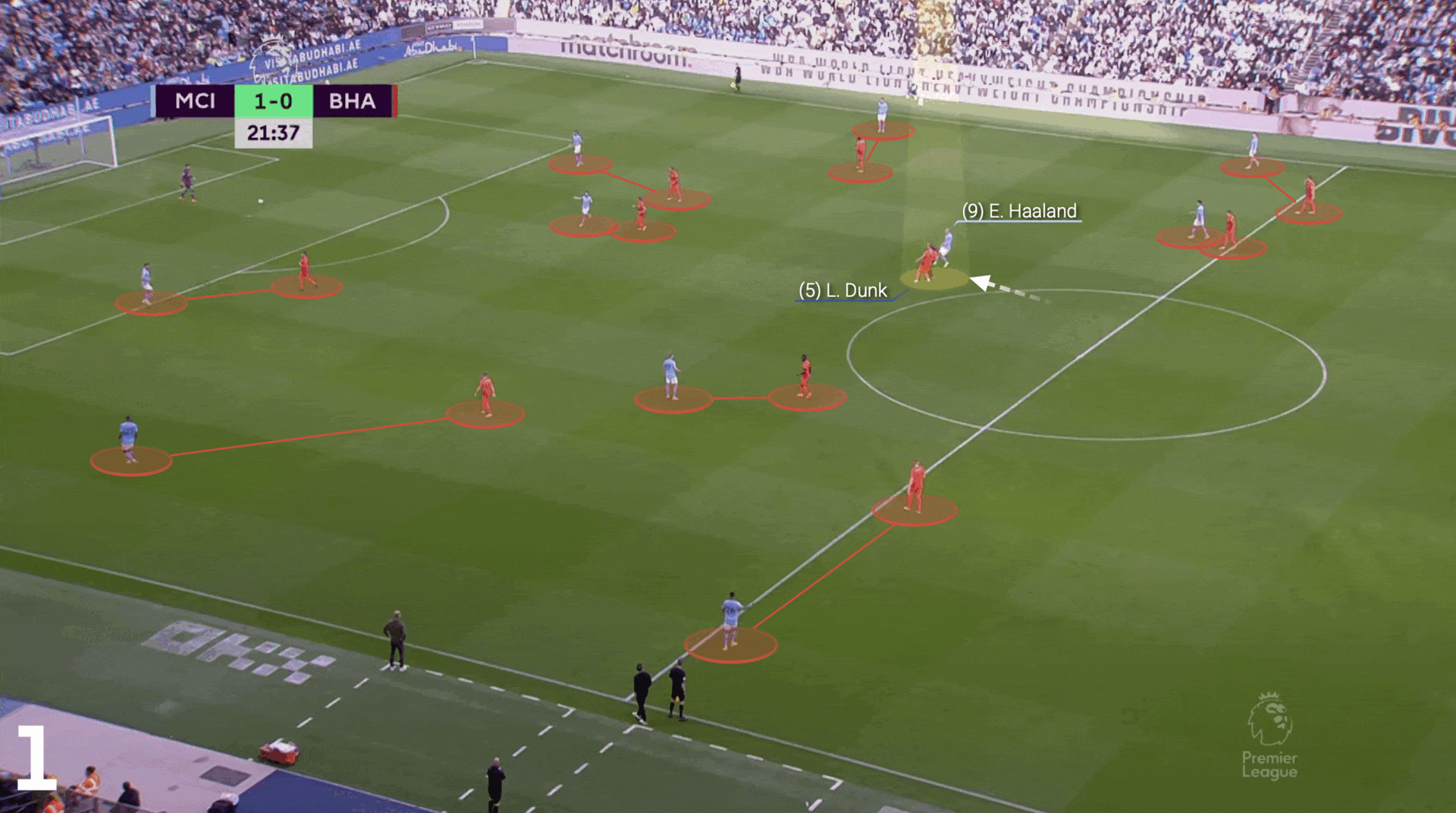 哈兰德回撤到本方半场,带走了中卫邓克,为过顶直塞创造了空间。埃德森以精准的力量和平稳的传球越过防线,皮球弹起后落在哈兰德胸口,后者轻松晃过被孤立的门将贾森-斯蒂尔,将韦伯斯特撞倒在地,并推射空门得分。